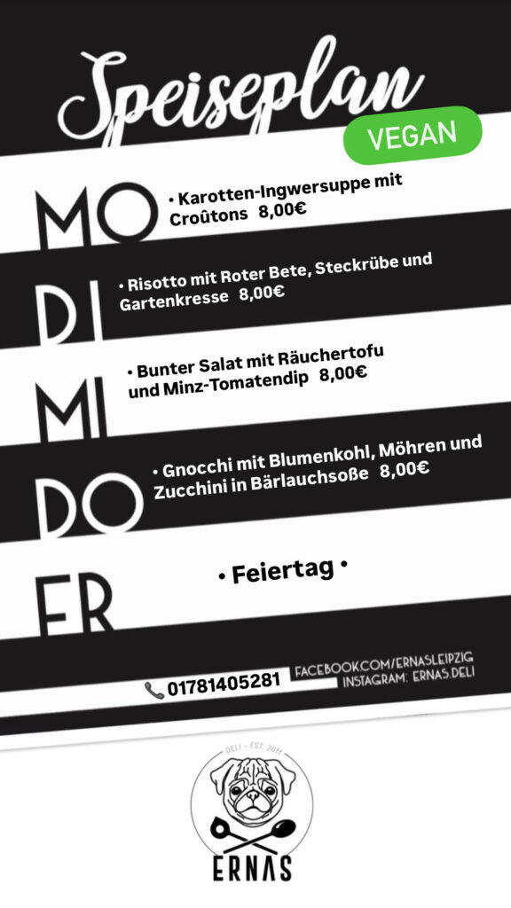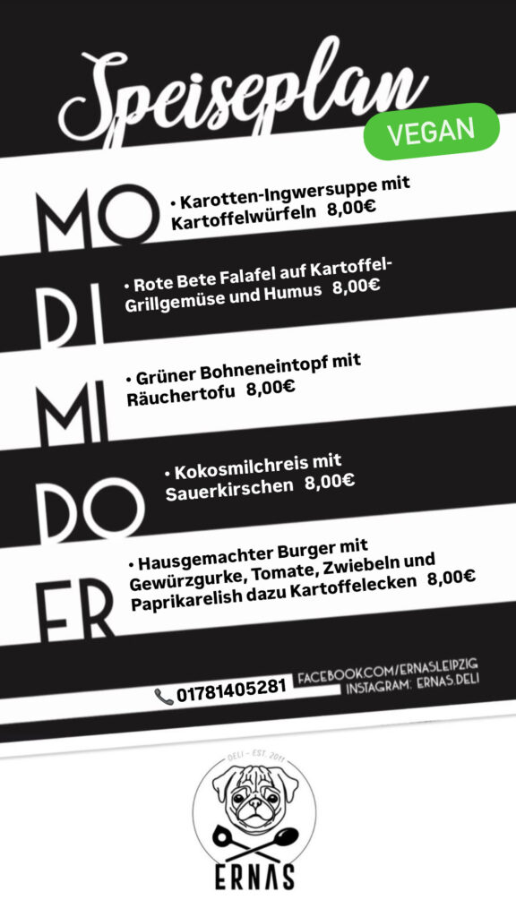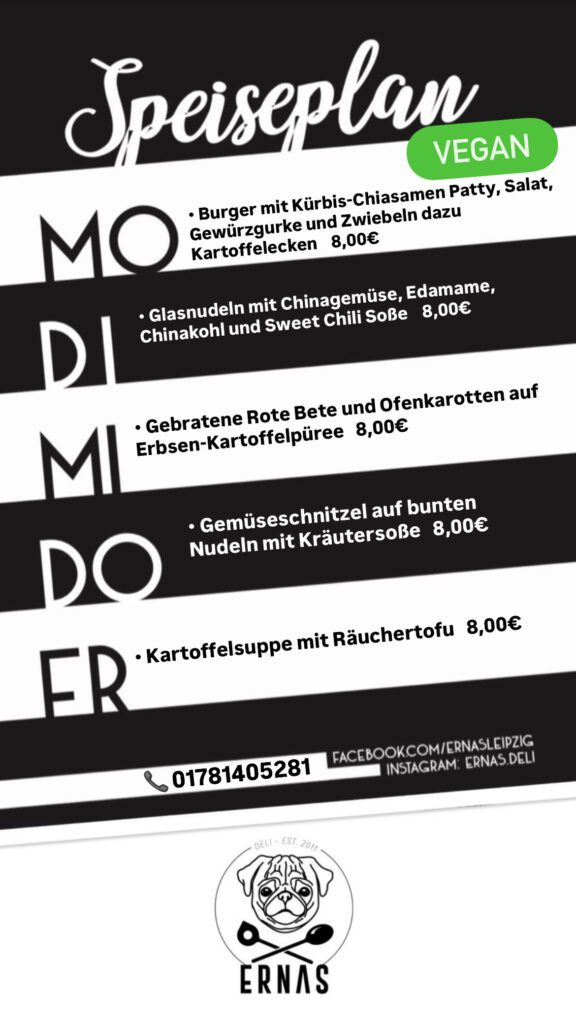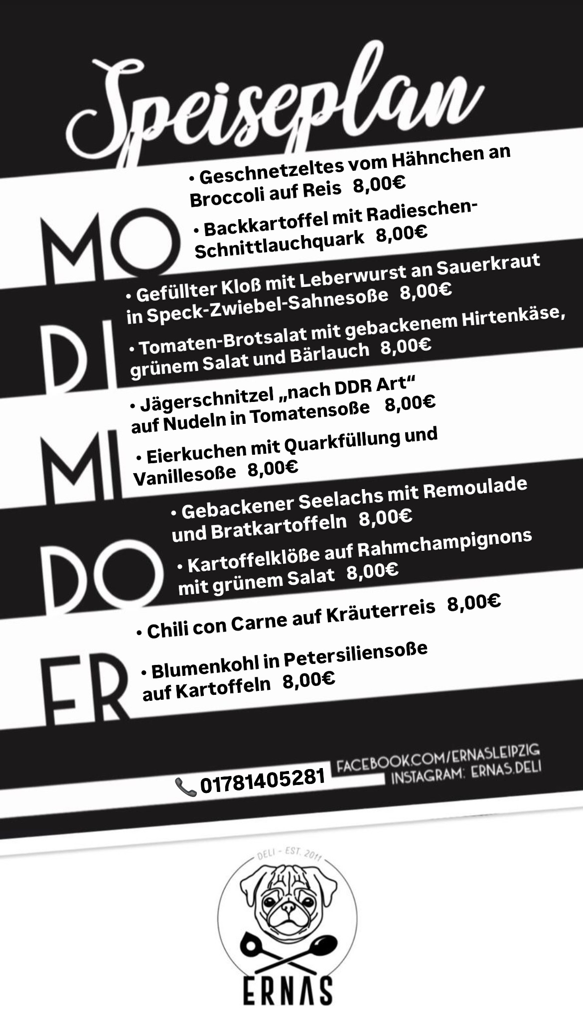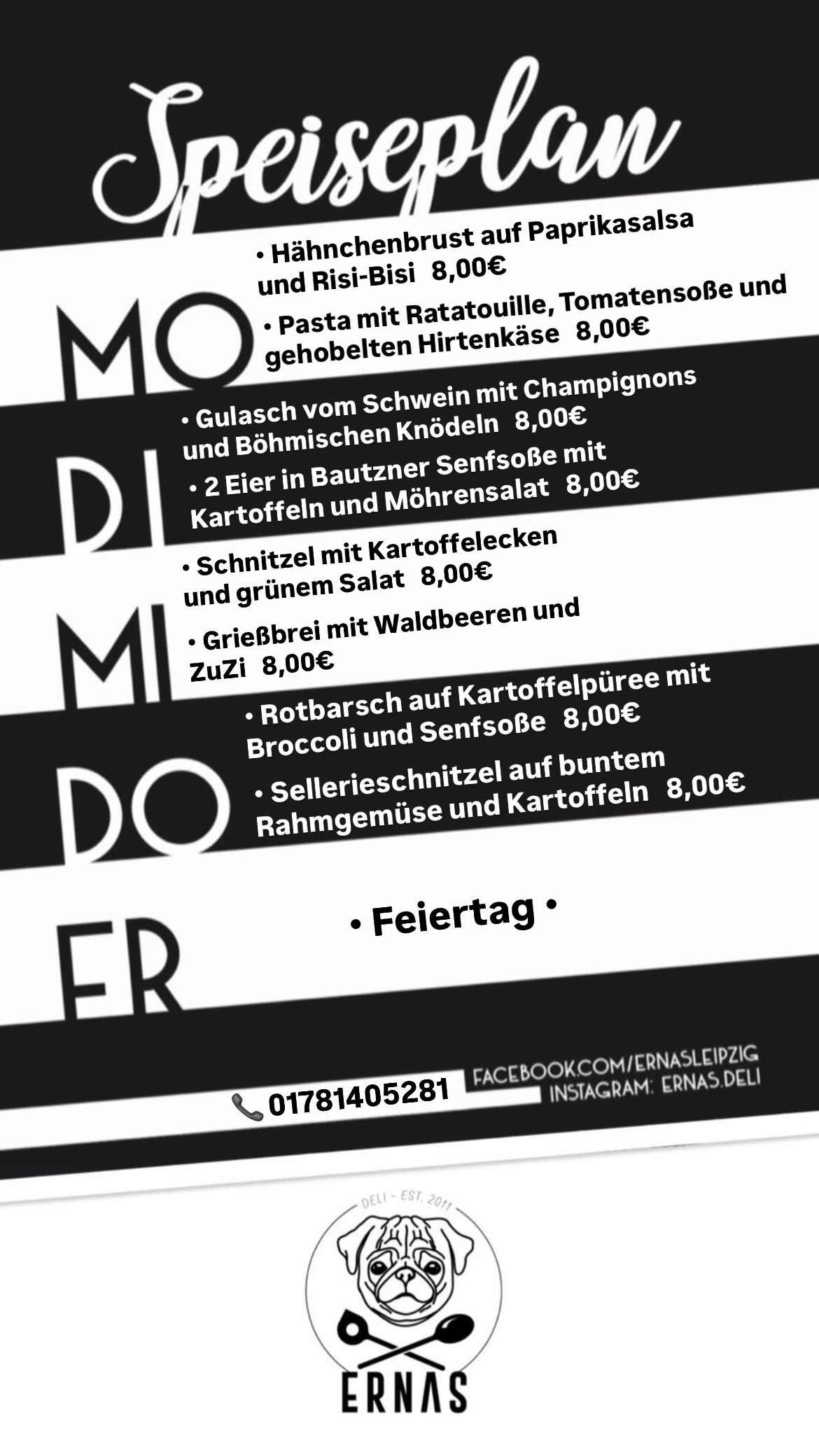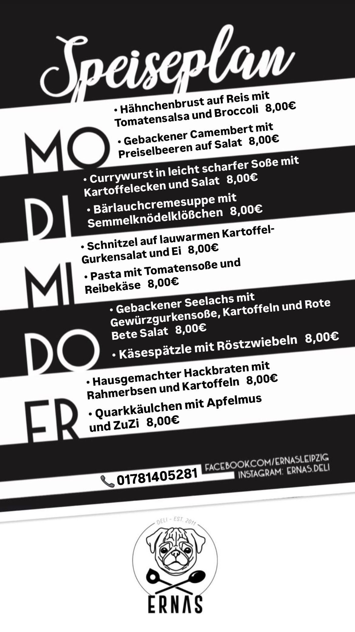 Reservierungen und Anfragen telefonisch unter 0178 1405281 oder per Mail an info@ernasdeli.de.