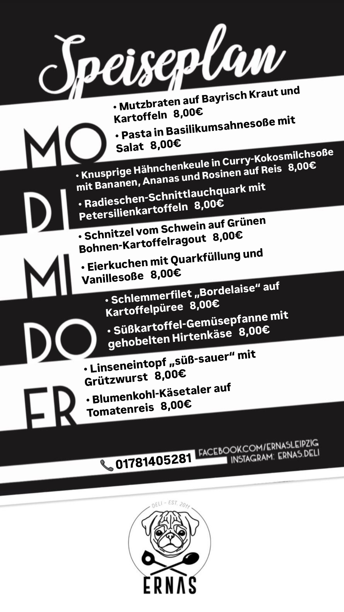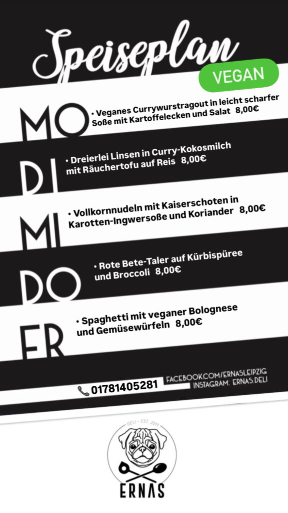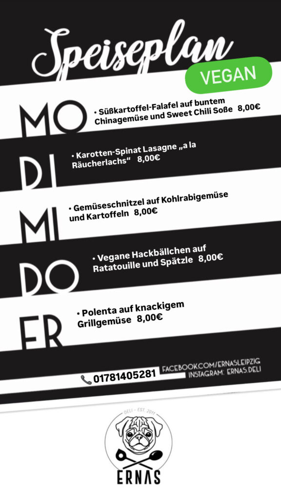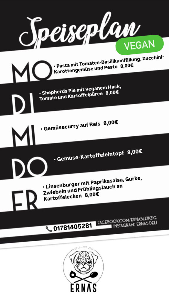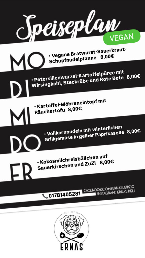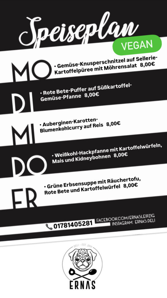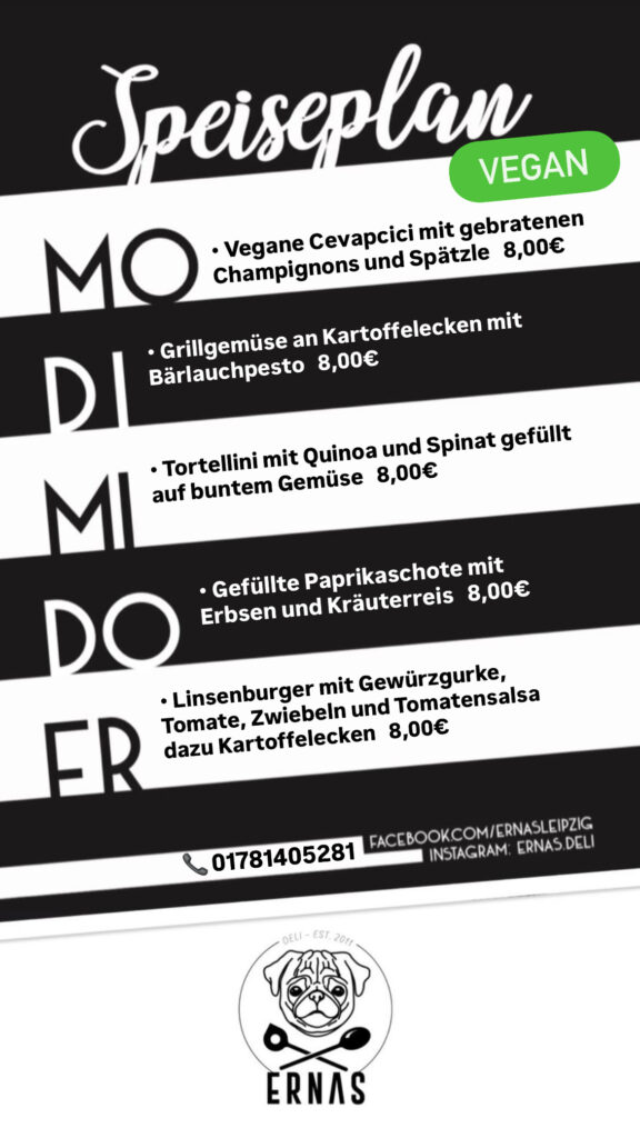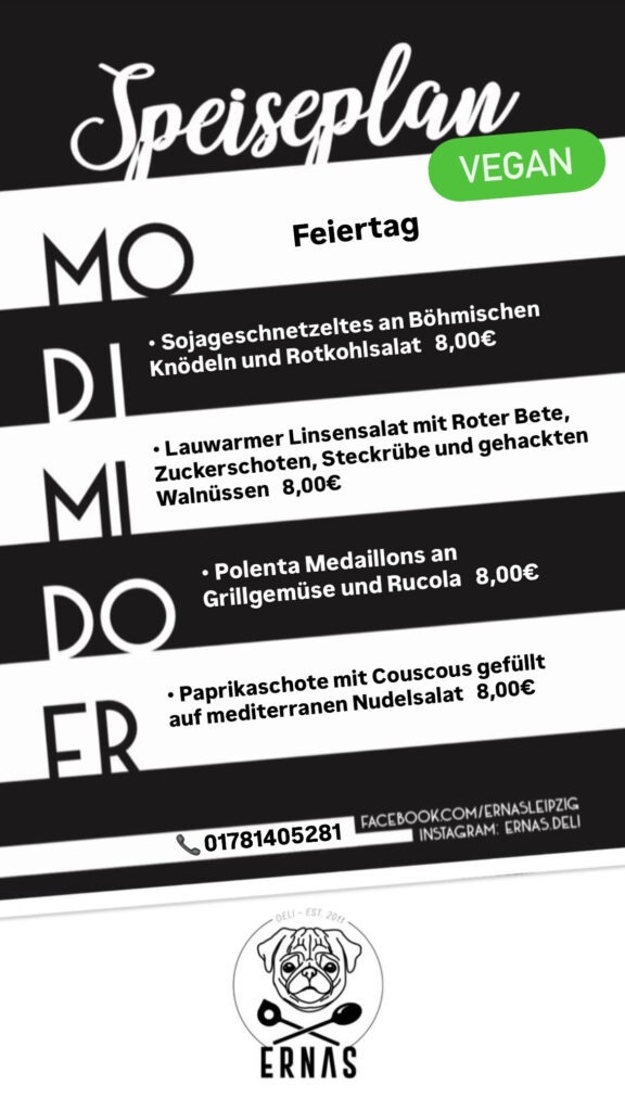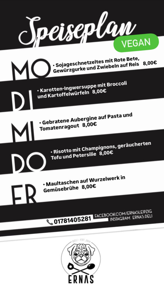 Reservierungen und Anfragen telefonisch unter 0178 1405281 oder per Mail an info@ernasdeli.de.